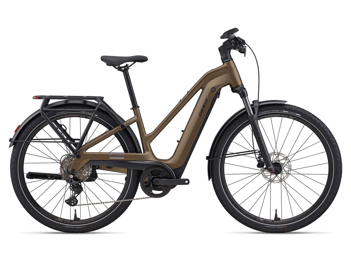 | Style | Built for adventure, the Explore E+ turns commutes and escapes into open horizons. With versatile design and seamless integration, it delivers smooth support, confidence, and freedom to ride farther-wherever the journey leads.Specifications:Motor Giant SyncDrive Sport2, 75Nm PedalPlus 6-sensor technologyController Giant RideControl Go 2 Giant RideControl Ergo4 Single Remote Display Giant RideDash EVO 2.0, high-angle visibility, 3" full color LCD display, on-board navigation Battery Giant EnergyPak Smart 625Wh, Aluminium casing with highest safety standard (EN50604) Range CO2 Neutral production Giant EnergyPak Plus 250 range extender compatible Charger Giant EnergyPak 4A smart charger compact, 60% charge in 2:30h Connectivity Giant RideControl App enabled ANT+ wireless display signal with e-bike profile Sizes S, M, L Colours Pyrite Brown Frame Gen 4 ALUXX aluminum, Overdrive 1.8" - 1.5" head tube, integrated battery, integrated KSA40 kickstand mount Fork SR Suntour XCR34 2CR coil boost 100mm travel 15x110mm AH axle Shock n/a Handlebar Giant Contour Comfort Riser 31.8x720mm Grips RideControl Ergo4 Integrated Trekking (w/Bar-end) Stem Giant Contour EVO integrated 16a?degree NEW (S/M:80mm L/XL/XXL 100mm) Seatpost Giant 30.9mm, 2-bolt Micro Adjustable, Forged Aluminium Saddle Selle Royal Vivo Ergo Moderate Unisex Pedals VPE-537 PP Platform Pedal Shifters Shimano Deore Linkglide Rear Derailleur Shimano Deore Linkglide 10-speed Brakes Tektro HD-M280, hydraulic disc, 180mm Brake Levers Tektro HD-M280 Cassette Shimano Linkglide, 11-43T, 10-speed Chain Shimano Linkglide CN-LG500 Crankset Forged alloy spider w/chainguard BCD 104, steel narrow/wide chainring 42T Rims Giant eX25, Tubeless Ready, 622x25 Aluminium Hubs Giant eTracker Boost 6-bolt disc 15x110mm [F] 12x148mm [R] Spokes Stainless steel, e-bike optimized Tyres Crosscut Gravel 2, 700x57c, Wire Bead, Tubeless Ready, w/ Reflection Strip Extras HMI 2.0 including E locking and Apple Find My. Aegis tyre Checker. On-board Tyre Pressure Management System (TPMS) Lighting Recon E HL50 StVZO [F] Rear Rack Integrated tail light [R] Lock ABUS Xplus battery lock Carrier MIK rack. System bag & basket compatible Tail light integrated Aegis Radar compatible Fender/Chainguard Alluminum Combined Maximum Load Limit Type 3 150kg |
