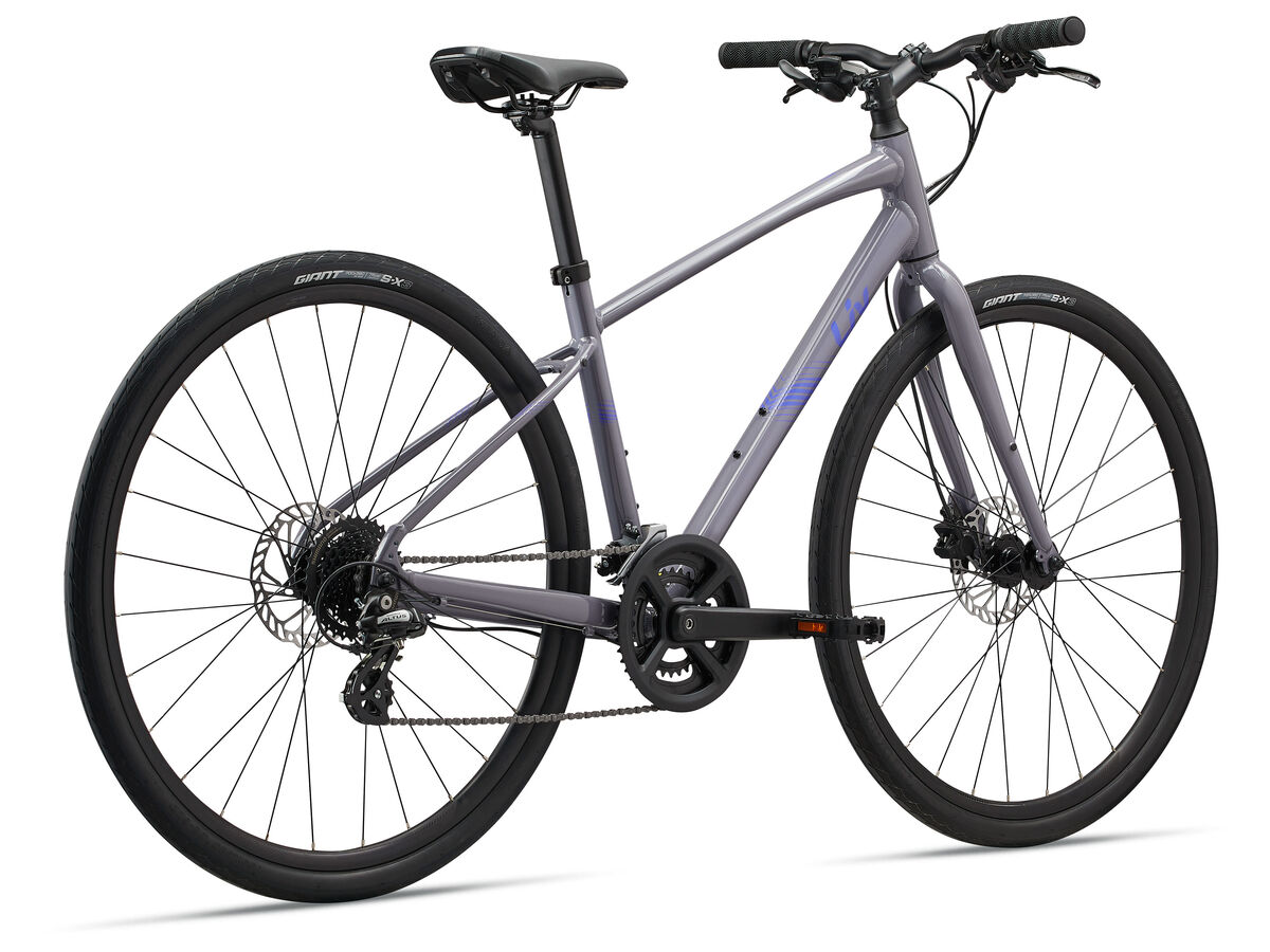 | Style | The Alight Disc features an easy on and off frame design, touchpoints to maximize comfort and is available in Alight Disc City models equipped with fenders, a rack and a kickstand making the ride on the bike path or the commute to work more enjoyable.ALUXX Aluminium Technology - This Performance level frame material features 6061 alloy with single-butted tubes to produce strong, lightweight framesets for a variety of different bikes and riding styles.Specifications:Sizes XS, S, M, LColours Night Haze Frame ALUXX-grade aluminum, disc Fork high tensile steel, disc Shock Handlebar Giant Sport flat, 25.4mm, 20mm riser XS: 600mm, S: 600mm, M: 640mm, L: 640mm Grips Sole O Grip Stem Giant Sport, 25.4mm XS: 75mm, S: 75mm, M: 90mm, L: 90mm Seatpost Giant D-Fuse, alloy XS:300mm, S:300mm, M:300mm, L:350mm Saddle Liv ErgoMax Pedals platform Shifters Shimano Altus, 2x8 Front Derailleur Shimano Altus Rear Derailleur Shimano Altus Brakes Tektro [F] HD-T275, [R] HD-R280 hydraulic [F]160mm, [R]160mm Brake Levers Tektro hydraulic Cassette Shimano CS-HG318, 11x34 Chain KMC Z8.3 Crankset Forged alloy, 30/46 with chainguard XS: 165mm, S: 165mm, M: 170mm, L: 170mm Bottom Bracket cartridge Rims Giant GX Disc wheelset Hubs Giant alloy, QR Spokes stainless Tyres Giant S-X3, 700x38c Extras 42mm or 40c max tire size, reflective stickers, rack, kickstand and fender frame mounts Compatibility Compatible with Direct Mount KSA 18mm Kickstand |