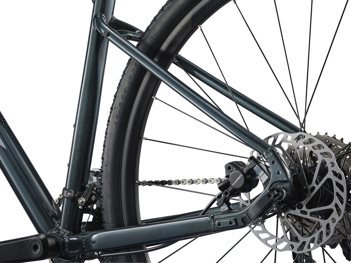 | Style | With its flat handlebar, comfortable upright positioning and smooth, powerful disc brakes, Roam combines the best qualities of a road bike and a mountain bike. Now you can follow your own route wherever it goes.ALUXX Aluminium Technology - This Performance level frame material features 6061 alloy with single-butted tubes to produce strong, lightweight framesets for a variety of different bikes and riding styles. D-Fuse Seatpost - The proprietary " D" shaped composite seatpost damps vibration, resulting in a smooth, compliant ride. Specifications:Sizes S, M, L, XLColours Asphalt Green Frame ALUXX-grade aluminum, disc Fork SR Suntour NEX HLO 700C, 63mm Shock Handlebar Giant Sport XC, 31.8mm S:64cm, M:68cm, L:68cm, XL:68cm Grips ErgoContact Stem Giant Sport, 8-degree S:60mm, M:70mm, L:80mm, XL:90mm Seatpost Giant D-Fuse, alloy, 350mm Saddle ErgoContact Pedals platform Shifters Shimano CUES U6000, 10-speed Front Derailleur Shimano CUES FDU6010 Rear Derailleur Shimano RDU602010 Brakes Tektro TKD-143 hydraulic, [F]160mm, [R]160mm rotors Brake Levers Tektro TKD-143 Cassette Shimano CS-LG40010D, 11x39 Chain KMC X11 Crankset forged alloy, 30/46 S:170mm, M:170mm, L:175mm, XL:175mm Bottom Bracket threaded Rims Giant double wall aluminum Hubs alloy, 28h Spokes stainless, 14g Tyres Giant CrossCut, anti-puncture, 700x42c Extras 53mm max tire size Max Tyre Clearance 53mm |