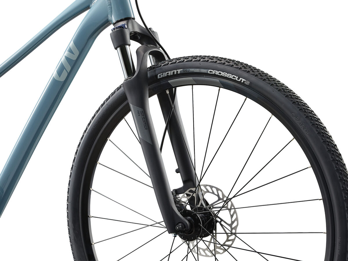 | Style | Riding the Rove is like catching up with an old friend - comfortable, reliable, and always up for an adventure. Whether you're cruising through the city, exploring country trails, or just taking the scenic route home, the Rove is right there with you.ALUXX Aluminium Technology - This Performance level frame material features 6061 alloy with single-butted tubes to produce strong, lightweight framesets for a variety of different bikes and riding styles. D-Fuse Seatpost - The proprietary " D" shaped composite seatpost damps vibration, resulting in a smooth, compliant ride. Specifications:Sizes XS, S, M, LColours Storm Cloud Frame ALUXX-grade aluminum, disc Fork SR Suntour NEX HLO 700C, 63mm, disc, lockout without rebound Shock Handlebar Giant Connect XC, 31.8mm, 9-degree/6-degree rise XS: 640mm, S: 640mm, M: 680mm, L: 680mm Grips Liv ErgoContact Stem Giant Sport XS: 70mm, S: 80mm, M: 80mm, L: 90mm Seatpost Giant D-Fuse, alloy XS: 300mm, S: 300mm, M: 300mm, L: 350mm Saddle Liv Ergo Contact Pedals platform Shifters Shimano CUES, 2x10 Front Derailleur Shimano CUES Rear Derailleur Shimano CUES Brakes Tektro TKD143, hydraulic disc [F]160mm, [R]160mm Brake Levers Tektro TKD149 Cassette Shimano CSLG40010D, 11x39 Chain KMC X11 with Missing Link Crankset Shimano CUES, forged alloy, 30/46 XS: 170mm, S: 170mm, M: 170mm, L: 170mm Bottom Bracket threaded Rims Giant SX Disc Hubs alloy, 28h Spokes stainless steel, 14g Tyres Giant CrossCut, 700x42c, puncture protect Extras 55c max tire size without fender, 45c max tire size with fender, reflective stickers, kickstand, fender and rack frame mounts |