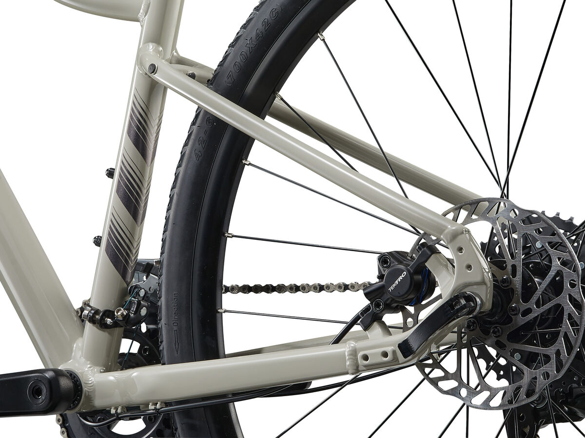 | Style | Riding the Rove is like catching up with an old friend - comfortable, reliable, and always up for an adventure. Whether you're cruising through the city, exploring country trails, or just taking the scenic route home, the Rove is right there with you.ALUXX Aluminium Technology - This Performance level frame material features 6061 alloy with single-butted tubes to produce strong, lightweight framesets for a variety of different bikes and riding styles. D-Fuse Seatpost - The proprietary " D" shaped composite seatpost damps vibration, resulting in a smooth, compliant ride. Specifications:Sizes XS, S, M, LColours Pulp Gray Frame ALUXX-grade aluminum, disc Fork SR Suntour NEX HLO 700C, 63mm, disc, lockout without rebound Shock Handlebar Giant Connect XC, 31.8mm, 9-degree/6-degree rise XS: 640mm, S: 640mm, M: 680mm, L: 680mm Grips Liv ErgoContact Stem Giant Sport XS: 70mm, S: 80mm, M: 80mm, L: 90mm Seatpost Giant D-Fuse, alloy XS: 300mm, S: 300mm, M: 300mm, L: 350mm Saddle Liv Ergo Contact Pedals platform Shifters Shimano Cues, 2x9 Front Derailleur Shimano Cues Rear Derailleur Shimano Cues Brakes Tektro TKD143, hydraulic disc [F]160mm, [R]160mm Brake Levers Tektro TKD149 Cassette Shimano CSLG3009, 11x36 Chain KMC X11 with Missing Link Crankset forged alloy, 30/46 XS: 170mm, S: 170mm, M: 170mm, L: 170mm Bottom Bracket threaded Rims Giant SX Disc Hubs alloy, 28h Spokes stainless steel, 14g Tyres Giant CrossCut, 700x42c, puncture protect Extras 55c max tire size without fender, 45c max tire size with fender, reflective stickers, kickstand, fender and rack frame mounts |