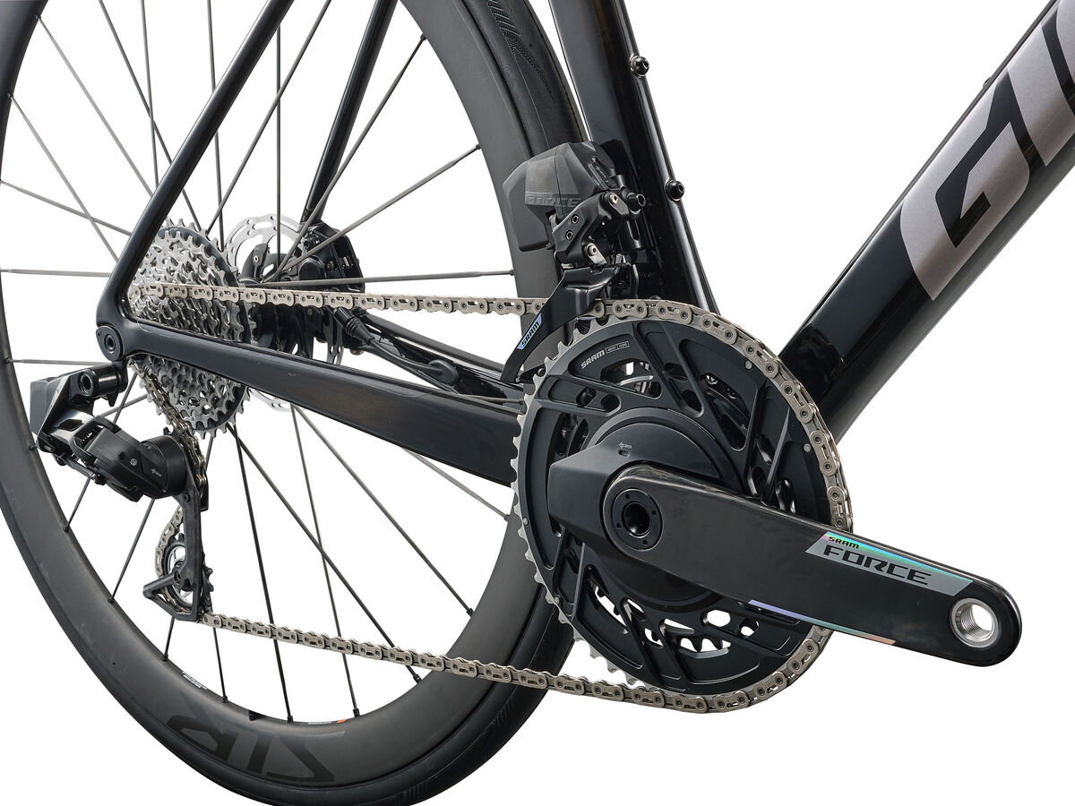 | Style | Superlight, ultra-efficient and rides like a dream. This well-rounded race bike blends industry-leading composite frame engineering with fully integrated components to help you climb, corner and descend with astonishing speed and sublime road handling.Advanced Composite Technology - Giant's High Performance Grade raw carbon material is used to produce this custom frame material in our own composite factory with a high stiffness-to-weight ratio. The front triangle of these framesets is assembled and molded as one continuous piece in a proprietary manufacturing process called Modified Monocoque Construction. Compact Road Design - Introduced by Giant with the professional Team ONCE in the 1990s, Compact Road revolutionized the look and feel of high-performance road bikes forever. A downward sloping toptube (from the headtube to the seattube) creates smaller front and rear triangles for a lighter, stiffer bike. It also makes it easier for riders of all sizes to have a perfect fit. OverDrive Aero - Found inside the head tube of the Defy, Propel and TCR ranges, the D-shaped fork steerer tube and corresponding spacers provide an extremely aerodynamic, easier to service system of internally routed brake and derailleur cables. PowerCore - A massively oversized bottom-bracket/chainstay area features a fully integrated, 86-millimeter wide bottom-bracket design (92-millimeter wide for off-road bikes). Asymmetric chainstays provide additional stiffness on the driveside and stability on the non-driveside. Tubeless System - Fewer flat tires. Greater traction. Less rolling resistance and a smoother, faster ride. Giant's Tubeless System makes it easier than ever to experience all these benefits. Specifications:Sizes S, M, M/L, L, XLColours Carbon Frame Advanced-grade Composite, 12x142mm thru-axle, disc Fork Advanced SL-grade Composite, full-composite OverDrive Aero steerer, 12x100mm thru-axle, disc Shock Handlebar Giant Contact SLR XS:420/370mm, S:420/370mm, M:440/390mm, M/L:440/390mm, L:440/390mm, XL:440/390mm Grips Stratus Lite 2.0 Stem Giant Contact SL AeroLight XS:80mm, S:90mm, M:100mm, M/L:110mm, L:110mm, XL:120mm Seatpost Giant Variant, composite, -5/+15mm offset Saddle Giant Fleet SL Pedals PEDALS NOT SUPPLIED Shifters SRAM Force AXS E1 Front Derailleur SRAM Force AXS E1 Rear Derailleur SRAM Force AXS E1 Brakes SRAM Force E1 hydraulic, SRAM CenterLine XR rotors [F]160mm, [R]140mm Brake Levers SRAM Force AXS Cassette SRAM Force E1, 12-speed, 10x36 Chain SRAM Force E1 Crankset SRAM Force AXS E1, 35/48 with SRAM power meter XS:165mm, S:165mm, M:170mm, M/L:170mm, L:172.5mm, XL:172.5mm Bottom Bracket SRAM DUB, press fit Rims Giant SLR 0 40 WheelSystem, [F]40mm, [R]40mm Hubs [F] Giant Low Friction Hub, CenterLock, 12mm thru-axle, [R] Giant Low Friction Hub, 40t ratchet driver, CenterLock, 12mm thru-axle Spokes Giant Aero Carbon Spoke Tyres CADEX Road Race GC, tubeless, 700x30mm, folding Extras computer mount, tubeless prepared, 33mm max tire size Max Tyre Clearance 33mm |