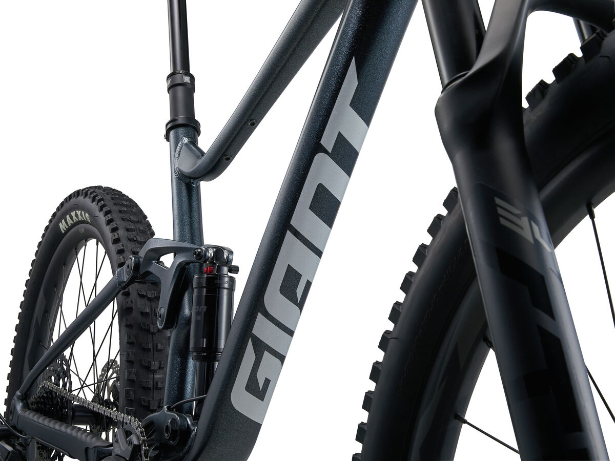 | Style | This all-new 29er dials up the fun with smooth suspension front and rear. From flow trails to chunky technical challenges, its balanced geometry and confident handling can help any rider step up their game.ALUXX Aluminium Technology - This Performance level frame material features 6061 alloy with single-butted tubes to produce strong, lightweight framesets for a variety of different bikes and riding styles. FlexPoint Suspension Technology - A proven " single-pivot" design that uses the flexing action of the chainstay/seatstay junction to produce a lightweight and durable suspension system with 4.7 inches/120mm of rear travel. OverDrive - Giant's original oversized fork steerer tube technology. Designed to provide precise front-end steering performance, the system's oversized headset bearings (1 1/4" lower and 1 1/8" upper for road, 1 1/2" lower and 1 1/8" upper for mountain) and tapered steerer tube work in conjunction to provide optimal steering stiffness. Tubeless System - Fewer flat tires. Greater traction. Less rolling resistance and a smoother, faster ride. Giant's Tubeless System makes it easier than ever to experience all these benefits. PowerCore - A massively oversized bottom-bracket/chainstay area features a fully integrated, 86-millimeter wide bottom-bracket design (92-millimeter wide for off-road bikes). Asymmetric chainstays provide additional stiffness on the driveside and stability on the non-driveside. Specifications:Sizes S, M, L, XLColours Satin Black Diamond Frame ALUXX-grade aluminium, 125mm FlexPoint suspension, 12x148mm thru-axle Fork Giant STL 34 RCL, 140mm, Boost 15x110 QR, custom tuned for Giant Shock Suntour Raidon R, 190x45 Handlebar Giant Contact SL TR35, 780x35mm Grips Giant Sole-O Stem Giant Contact SL 35 S:40mm, M:40mm, L:50mm, XL:50mm Seatpost Giant Contact Switch AT dropper, remote S: 110mm - 140mm travel / 30.9 x 395mm M: 140mm - 170mm travel / 30.9 x 470mm L: 170mm - 200mm travel / 30.9 x 530mm XL: 170mm - 200mm travel / 30.9 x 530mm Saddle Giant Romero Pedals PEDALS NOT SUPPLIED Shifters Shimano CUES SL-6000-10R, 1x10 Front Derailleur Rear Derailleur Shimano CUES RD-U6000 Brakes Shimano BR-MT200, hydraulic, Shimano RT-26 rotors [F]180mm, [R]180mm Brake Levers Shimano BL-MT201 Cassette Shimano CUES CS-LG300, 11x48 Chain Shimano CUESLG500 Crankset Shimano CUES FC-U6000-1, 30t S:170mm, M:170mm, L:170mm, XL:170mm Bottom Bracket Shimano, threaded Rims Giant AM 29 alloy, tubeless ready Hubs [F] Giant Tracker Performance Boost 15x110, sealed bearing [R] Giant Tracker Giant Sport 148x12 Spokes Sapim Tyres [F] Maxxis Minion DHF 29x2.5 WT, EXO, TR [R] Maxxis Dissector 29x2.4 WT, Dual, EXO, TR, tubeless Extras Factory tubeless set up Max Tyre Clearance 2.4" Max Chainring Size 32t |