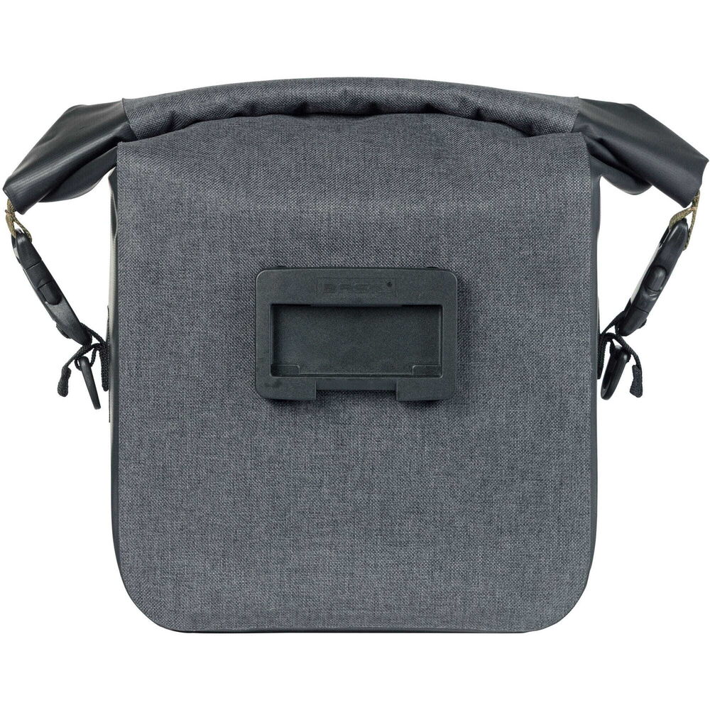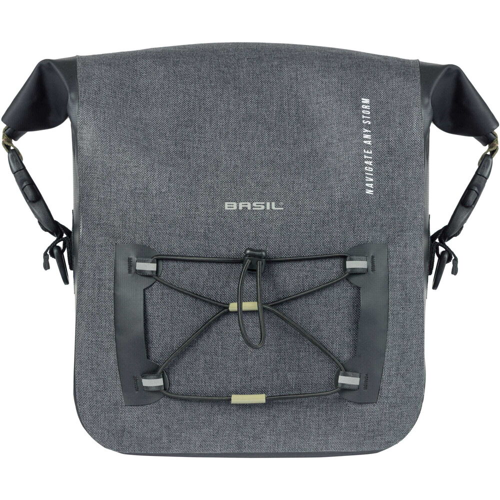 The handlebar bag is made of waterproof polyester and tarpaulin, so it will last for years to come on your bike rides. The bag has a sporty look and fits perfectly with the other bags in the Navigator Storm collection. Everything has been thought of to ensure your belongings are carried as practically as possible. For example, an adjustable elastic cord, zipper, and mesh pocket are on the inside of the bag, and the handlebar bag can be easily closed with the roll-top closure. You'll never lose your keys again, thanks to the snap-hook. Out for a ride in the dark? No problem! The reflective Basil logos on 3 sides make you better visible.