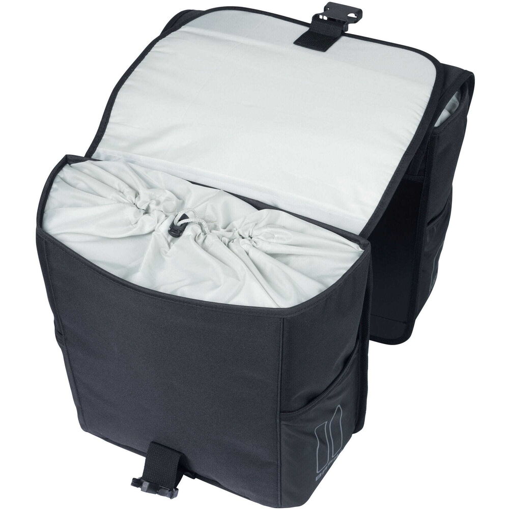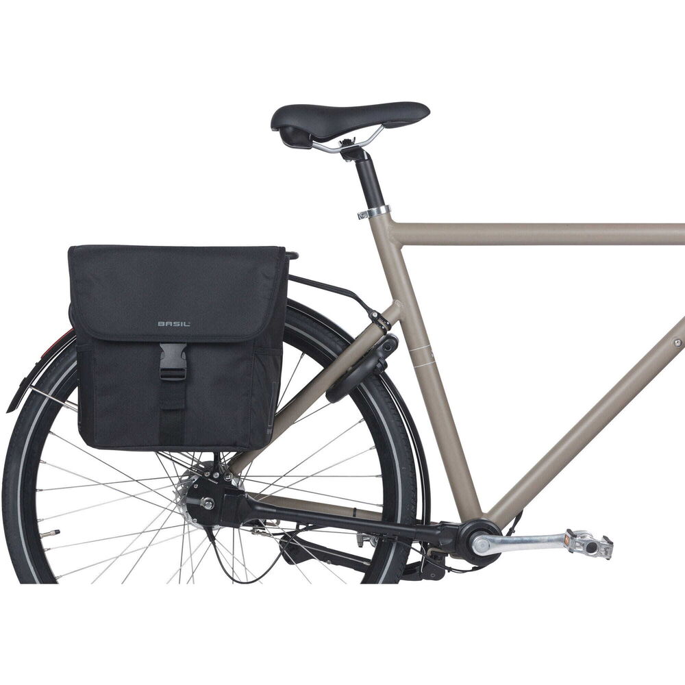| Description | GO Double Bag 32L solid black Basil GO - double bicycle bag - 32 litre - black The Basil GO Double Bag comes in classic black and is just the ticket for cyclists after a great deal of storage when they're on the go. Whether it's a bike ride with friends or a trip to the supermarket, you've plenty of space here for a long list of essentials. The bag itself is lockable, meaning your contents are well protected as you go, while the connecting cord keeps both hemispheres of the bag tethered together. The innovative design of this bag means you can attach other extras to the rear of your bike, including child seats and other carrier accessories. Side pockets provide extra storage space for drinks bottles and umbrellas, with a total capacity of 32 litres available. This bag is easily attached to luggage carrier of your bicycle, including e-bikes. Want to mount onto a MIK interface For this SKU you will require the MIK product mounting adaptor plate 2.0 (product code BAS70173) Features: |