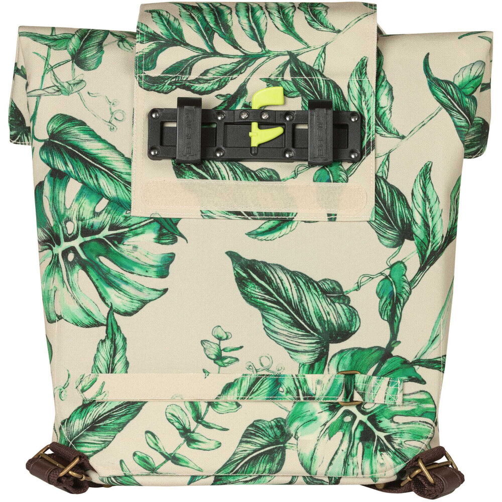 This multifunctional bag can be carried in multiple ways. In no time at all, you can change the bag from a bike backpack to a handbag or shoulder bag. The choice is yours! The bag is easily attached to your carrier with the Hook-On system. The bike backpack is designed in such a way that you can hide the hooks neatly behind a zipper. No one will see your handbag being used as a bike bag anymore. The Basil Ever-Green bike backpack has a capacity of 14 to 19 litres. The water-resistant folding closure can be closed with a zipper. On the inside, you'll find a pocket that closes with a zipper. On the front of the bag is an extra pocket with a magnetic closure. For better visibility, the pannier contains reflective sides. Features: