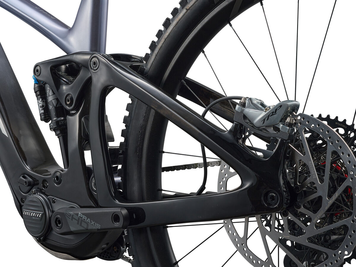 | Style | Everything about the new Reign Advanced E+ is designed to make it the best descending E-MTB ever. From the bottomless feeling Maestro suspension with 170mm of rear travel (and a 180mm fork) to the punchy new SyncDrive Pro 3 motor and its lightweight, stiff and ultra-adjustable composite frame. We added a titanium skid plate, robust frame protection, and an innovative bash-guard with an elastomer damper-so you can send it with confidence on the most rugged, technical terrain.Advanced Composite Technology - Giant's High Performance Grade raw carbon material is used to produce this custom frame material in our own composite factory with a high stiffness-to-weight ratio. The front triangle of these framesets is assembled and molded as one continuous piece in a proprietary manufacturing process called Modified Monocoque Construction. Smart Assist - All SyncDrive motors have Smart Assist technology, which adjusts the support to match the rider's needs. By using information from multiple sensors, both rider input and terrain feedback are used to determine the optimal amount of pedaling assistance. SyncDrive is the only e-bike system that utilizes both rider input and terrain feedback. It gives you a smooth, natural riding experience with ample power when you need it, while also conserving power when you don't need as much. Flip Chip - Maestro 3 - This all-new technology allows riders to quickly adjust the geometry and choose a rear wheel size (29-inch or 27.5-inch) for their riding style and terrain. It's available on select Maestro-equipped mountain bikes. The adjustment affects head tube and seat tube angles, bottom bracket height, and rear-wheel size using eccentric flip chip hardware located on the upper rocker arm of the rear suspension. Maestro Suspension Technology - Four strategically positioned pivot points and two linkages all work together to create a single floating pivot for the most active, efficient and independent suspension system on the trail. E+ System - E+ System combines electric power with human power to produce a smart, natural and powerful E-bike riding experience. It's an integrated group of technologies that includes our RideControl control units, EnergyPak battery systems and SyncDrive motors. For more information, check out the link below. RideControl Ergo 4 - The new RideControl Ergo 4 builds on the previous generation Ergo 3 with a sleek, grip-integrated 3-button remote control unit. It blends seamlessly with your handlebar and grips and has a larger, more concave shape and improved tactile feedback. Energypak 560 - Integrated 560Wh battery pack powers a 48-volt system that produces more power with less heat and stress on the battery cells. Exceptionally durable, it delivers up to 2300 full charge cycles-more than any other E-bike battery-and recharges rapidly, reaching 80% battery capacity in as little as two hours. EnergyPak Plus 280 - This range extender can boost total capacity by 280Wh. This gives you the choice-lighter weight for everyday rides or longer range for epic ride days. SyncDrive Pro 3 - Powerful new 48-volt system delivers up to 800 watts of peak power while producing less heat and motor stress-improving efficiency to give you more peak power for longer. You can tune and adjust torque and support levels to match your ride. Choose full power for steep climbs, or dial it back to save energy on long rides. Specifications:Motor Giant SyncDrive Pro 3, 90Nm PedalPlus 6-sensor technologyController Giant RideControl Ergo 4 Display Giant RideControl GO Lux Battery Giant EnergyPak Smart 560W and Giant EnergyPak Plus 280W range extender Charger Giant EnergyPak smart charger 4A, 48V Connectivity Aegis Tire Checker included in RideControl display Sizes S, M, L, XL Colours Mercury/Carbon Smoke Frame Advanced-grade composite frame, Advanced forged composite upper rocker, 170mm Maestro suspension system Fork Fox 38 Performance Elite, 29", 180mm travel, Grip X2 damper, 44mm offset, KaboltX 110x15mm Boost axle Shock Fox Float X Performance, EVOL Large Volume sleeve, 205x65mm Trunnion mount, custom tuned Handlebar Giant Contact SL TR35, 35x800mm, 35mm rize, Up: 5a?degree Back: 9a?degree Grips Giant Tactal Pro-E, tapered design, 135mm Ø28~30mm (S/M) 142mm Ø29~32mm (L/XL) Stem Giant Contact SL 35 Seatpost Giant Contact Switch adjustable dropper, 30,9mm (S:110~140, M:140~170,L/XL: 170~200) MMX remote Saddle Giant Romero, Neutral Shifters SRAM Eagle 90 Transmission Single Click Rear Derailleur SRAM 90 Eagle Transmission Brakes TRP DH-R EVO, hydraulic disc, E2.3 caliper, 4-piston, 220mm [F/R] Brake Levers TRP DH-R EVO Cassette SRAM Eagle Transmission, 10-52T, 12-speed Chain SRAM 70 Eagle Transmission Flattop Powerlink 12-speed Crankset SRAM Eagle Transmission 36T chainring Praxis e-HD forged crankarm set (Q-Factor:168mm, Length: 160mm) Rims Giant e-TRA, Hookless, 30mm inner width, Hollow Side-Wall Design for improved strength and flat protection, 2~4psi lower air pressure recommended Hubs Giant e-TRA, E-Drive 260Nm 6-Pawl Driver, 72T engagement, 15x110mm [F] 12x148mm [R], e-bike optimized Spokes Giant TRA, Dynamic Balanced Lacing Tyres Maxxis Assagai 29x2.5" foldable, tubeless, EXO+ 3C MaxxGrip[F] Maxxis MINION DHR II 27.5x2.4" WT foldable, Tubeless, DoubleDown, 3C MaxxGrip Compound [R] Extras Aegis Tire Checker Lighting Optional: - Giant Recon series e-bike lights available and direct connectable |