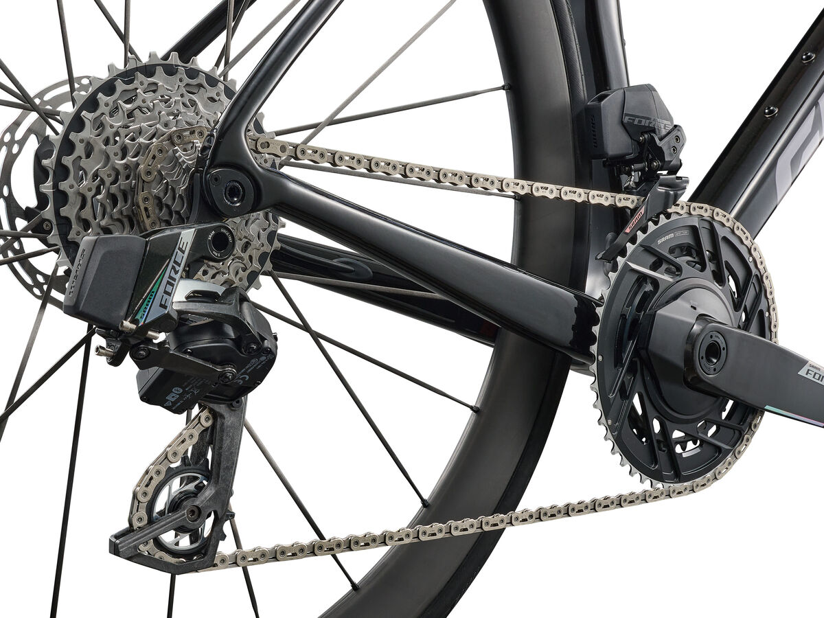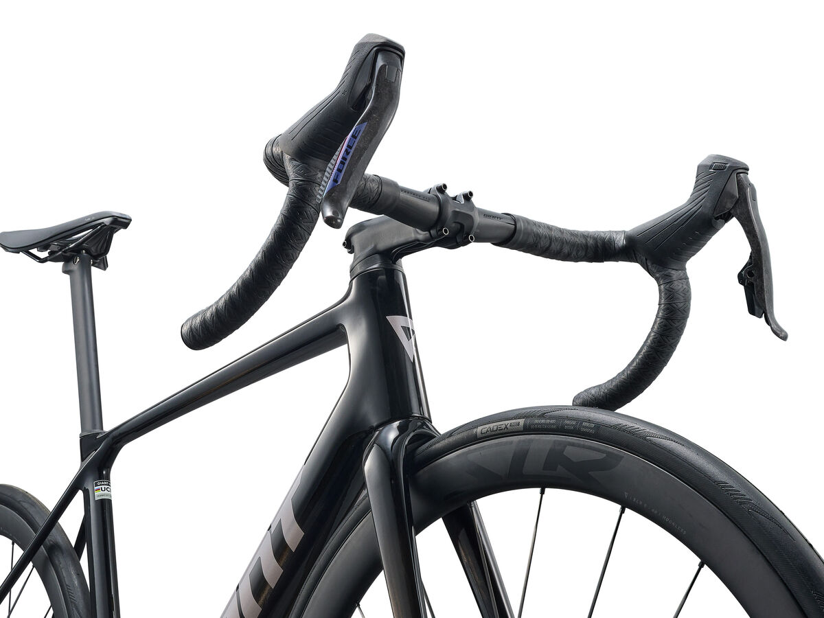 | Style | Superlight, ultra-efficient and rides like a dream. This well-rounded race bike blends industry-leading composite frame engineering with fully integrated components to help you climb, corner and descend with astonishing speed and sublime road handling.Advanced Composite Technology - Giant's High Performance Grade raw carbon material is used to produce this custom frame material in our own composite factory with a high stiffness-to-weight ratio. The front triangle of these framesets is assembled and molded as one continuous piece in a proprietary manufacturing process called Modified Monocoque Construction. Compact Road Design - Introduced by Giant with the professional Team ONCE in the 1990s, Compact Road revolutionized the look and feel of high-performance road bikes forever. A downward sloping toptube (from the headtube to the seattube) creates smaller front and rear triangles for a lighter, stiffer bike. It also makes it easier for riders of all sizes to have a perfect fit. OverDrive Aero - Found inside the head tube of the Defy, Propel and TCR ranges, the D-shaped fork steerer tube and corresponding spacers provide an extremely aerodynamic, easier to service system of internally routed brake and derailleur cables. PowerCore - A massively oversized bottom-bracket/chainstay area features a fully integrated, 86-millimeter wide bottom-bracket design (92-millimeter wide for off-road bikes). Asymmetric chainstays provide additional stiffness on the driveside and stability on the non-driveside. Tubeless System - Fewer flat tires. Greater traction. Less rolling resistance and a smoother, faster ride. Giant's Tubeless System makes it easier than ever to experience all these benefits. Specifications:Sizes S, M, M/L, L, XLColours Carbon Frame Advanced-grade Composite, 12x142mm thru-axle, disc Fork Advanced SL-grade Composite, full-composite OverDrive Aero steerer, 12x100mm thru-axle, disc Shock Handlebar Giant Contact SLR XS:420/370mm, S:420/370mm, M:440/390mm, M/L:440/390mm, L:440/390mm, XL:440/390mm Grips Stratus Lite 2.0 Stem Giant Contact SL AeroLight XS:80mm, S:90mm, M:100mm, M/L:110mm, L:110mm, XL:120mm Seatpost Giant Variant, composite, -5/+15mm offset Saddle Giant Fleet SL Pedals PEDALS NOT SUPPLIED Shifters SRAM Force AXS E1 Front Derailleur SRAM Force AXS E1 Rear Derailleur SRAM Force AXS E1 Brakes SRAM Force E1 hydraulic, SRAM CenterLine XR rotors [F]160mm, [R]140mm Brake Levers SRAM Force AXS Cassette SRAM Force E1, 12-speed, 10x36 Chain SRAM Force E1 Crankset SRAM Force AXS E1, 35/48 with SRAM power meter XS:165mm, S:165mm, M:170mm, M/L:170mm, L:172.5mm, XL:172.5mm Bottom Bracket SRAM DUB, press fit Rims Giant SLR 0 40 WheelSystem, [F]40mm, [R]40mm Hubs [F] Giant Low Friction Hub, CenterLock, 12mm thru-axle, [R] Giant Low Friction Hub, 40t ratchet driver, CenterLock, 12mm thru-axle Spokes Giant Aero Carbon Spoke Tyres CADEX Road Race GC, tubeless, 700x30mm, folding Extras computer mount, tubeless prepared, 33mm max tire size Max Tyre Clearance 33mm |