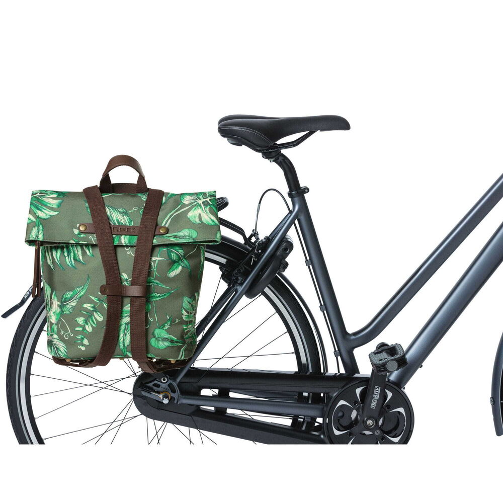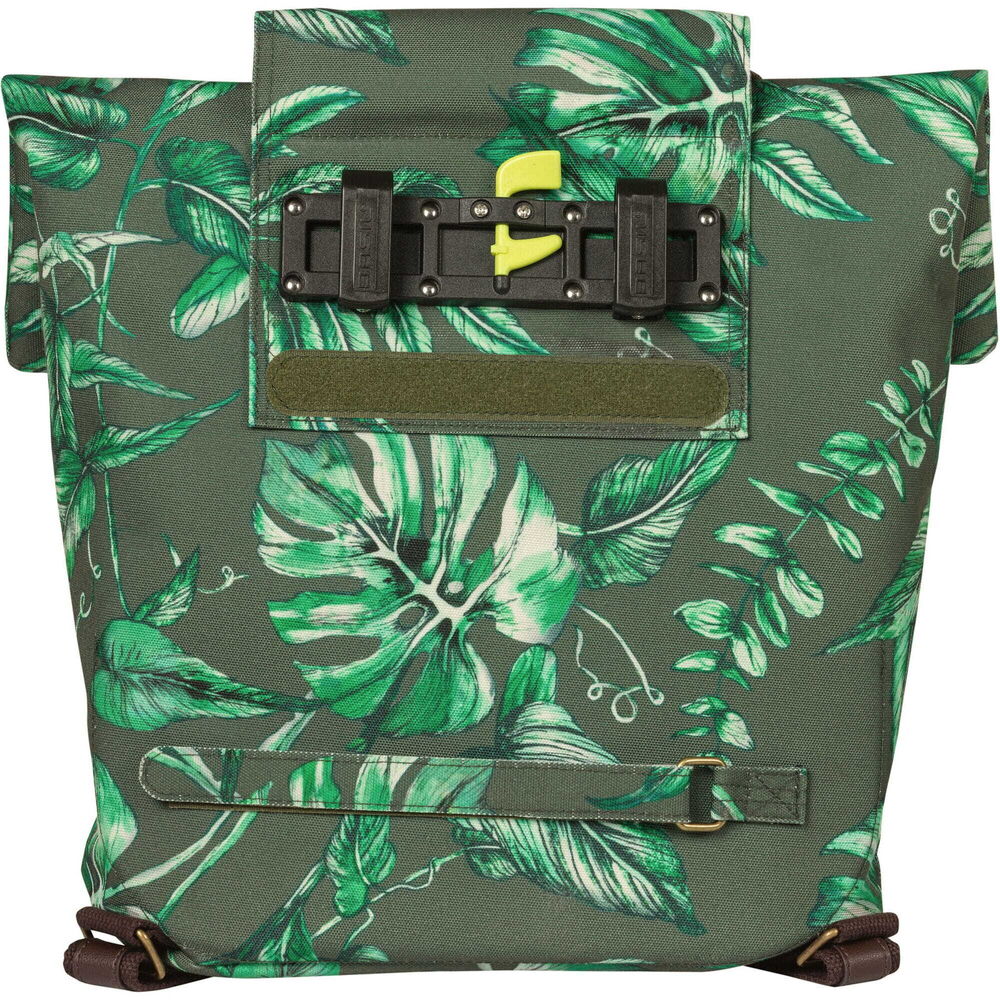 This multifunctional bag can be carried in multiple ways. In no time at all, you can change the bag from a bike backpack to a handbag or shoulder bag. The choice is yours! The bag is easily attached to your carrier with the Hook-On system. The bike backpack is designed in such a way that you can hide the hooks neatly behind a zipper. No one will see your handbag being used as a bike bag anymore. The Basil Ever-Green bike backpack has a capacity of 14 to 19 litres. The water-resistant folding closure can be closed with a zipper. On the inside, you'll find a pocket that closes with a zipper. On the front of the bag is an extra pocket with a magnetic closure. For better visibility, the pannier contains reflective sides. Features: